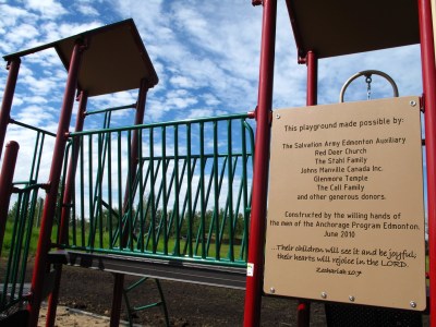 Last year we were able to open the new cabins – this year they are fully furnished and the grass has filled in nicely. New this year is the playground. We had a number of donors who generously made this possible.