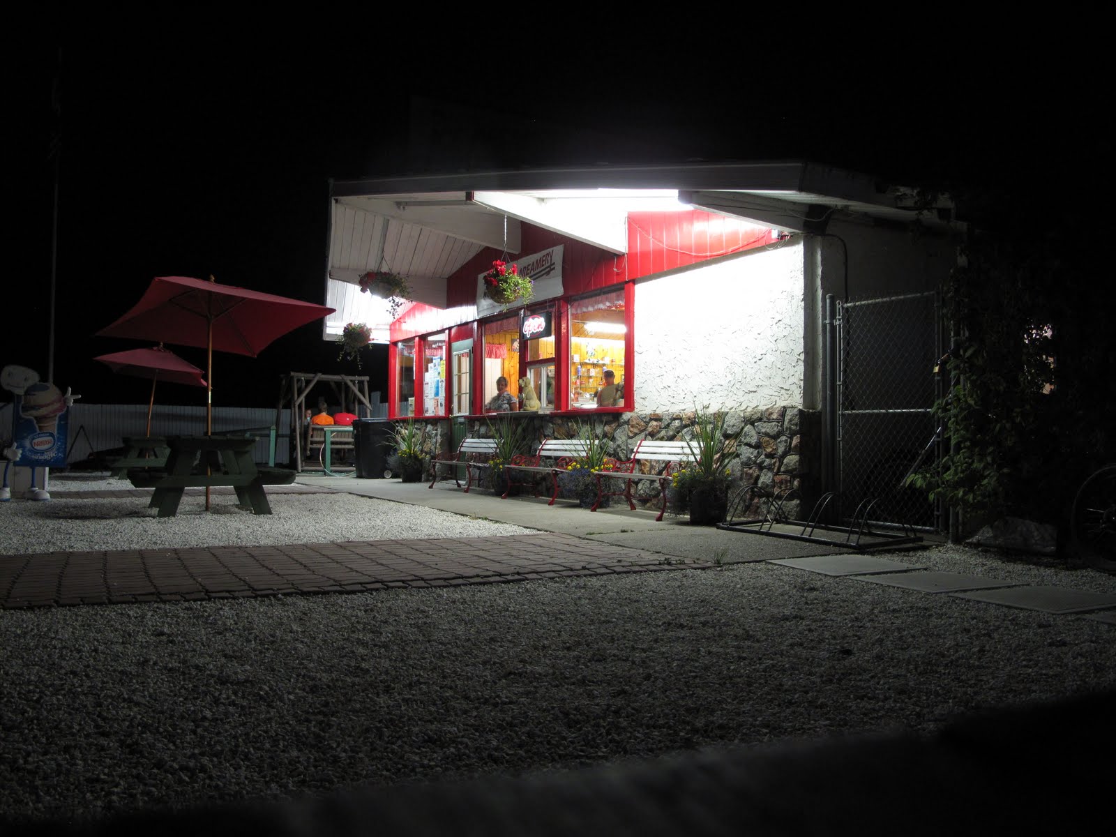 What’s a holiday without ice cream? And what’s a holiday without visiting the local ice cream icon? It was a trip to The Creamery last night for the three of us. For me, Black Forest Cake …mmmmm. We then headed to the secret room out the back – well it isn’t that secret, it is only a patio area with nice white lights and lots of flower pots around. What made it seem secret was the fact that you had to go through a door that was marked “washrooms”.