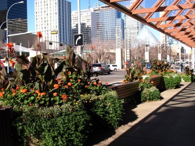 //www.youtube.com/get_playerAt the southwest corner of Churchill Square a busker plays most days – I do not know his name but he is very talented. Today I recorded a short video of him playing. Across from there is the library and they still have large planters with beautiful plants growing in them.