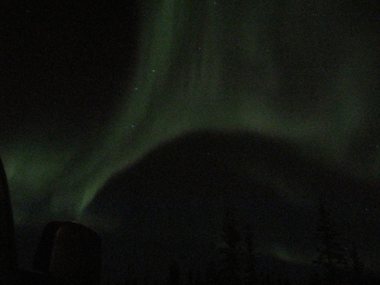 We took a drive with Dale and Jo this evening out to the edge of Yellowknife. The big rigs were making their way off the ice road back into town and above them the northern lights were dancing about the sky – brightly!