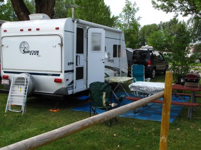 We eventually settled on a Surveyor Hybrid. Since then we’ve visited Vancouver Island, Washington State, Idaho, British Columbia, and Montana. We’ve driven from Calgary into northern Ontario and all across Alberta. It is a great trailer – light enough to tow using our van, which is by the way a great tow vehicle. The Uplander has a 3.9 L engine which gives us 240hp and a lengthy wheelbase. Not everyone agrees with this choice of vehicle but we’ve found it to be good. It tows through the mountains with ease, across the plains with confidence.