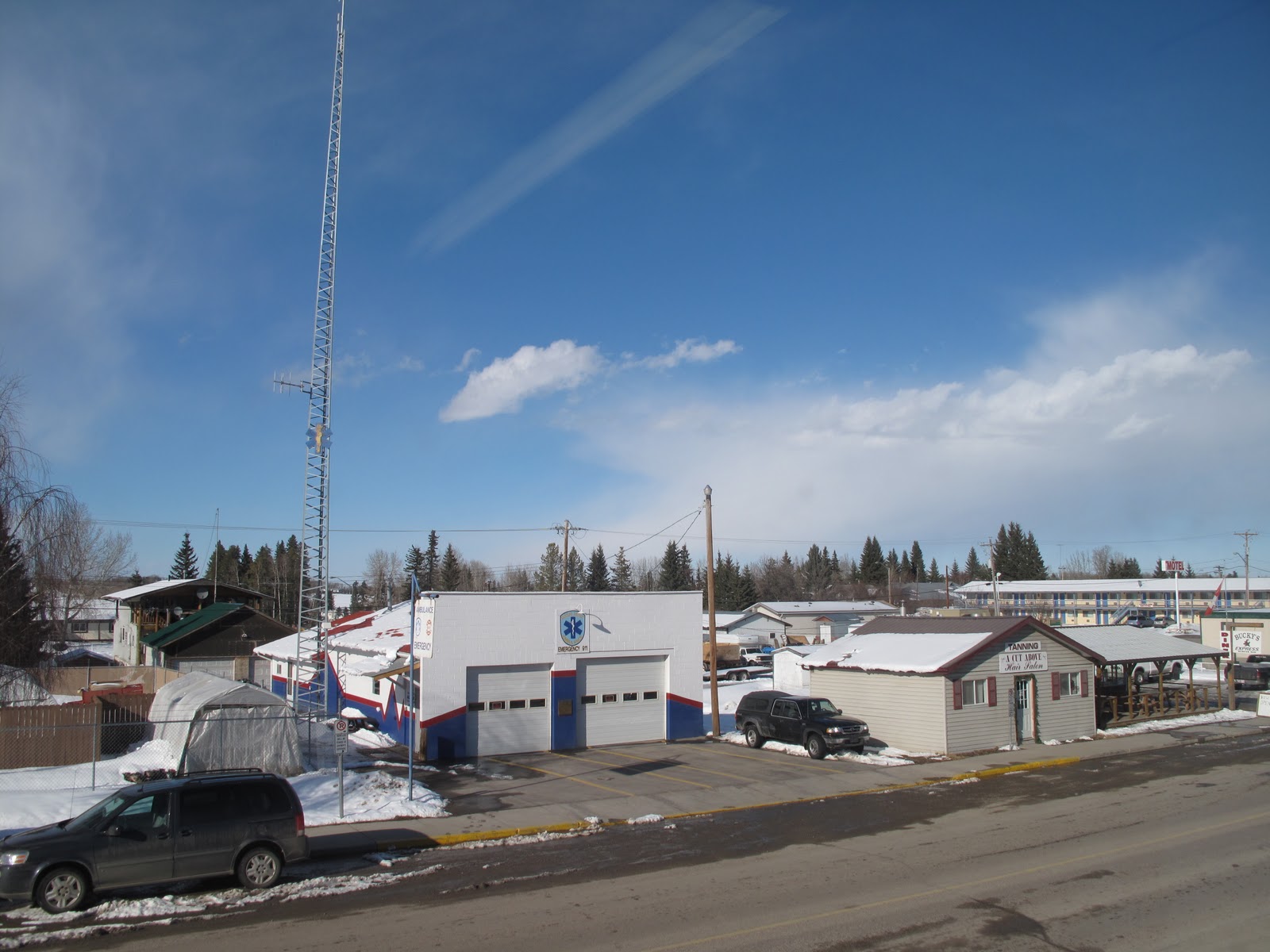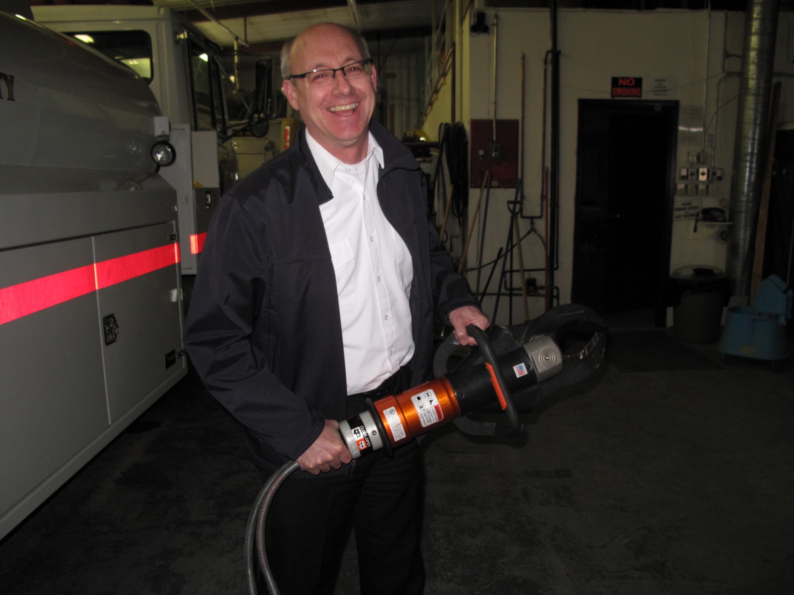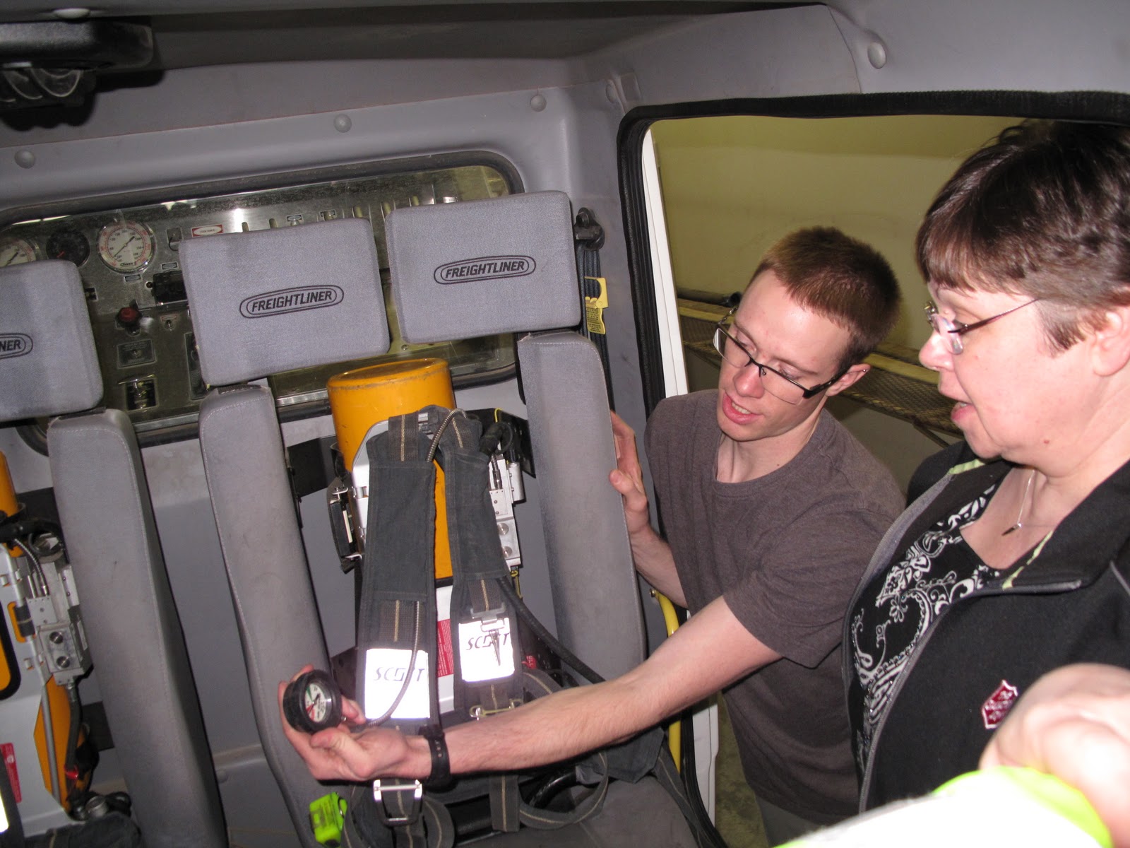 Yesterday we took a drive to where Phil is serving as an EMT – we got to visit the Fire Hall (which is on one side of the street) and then to see the EMS station and the ambulance Phil works on. And yes – that’s me with the jaws of life!!