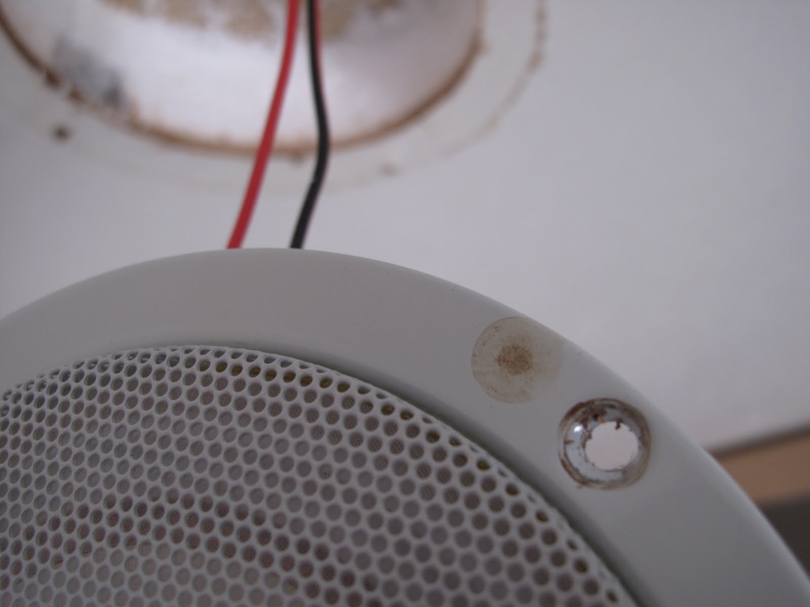 I decided to pull off the speaker…then the light (nearby) and the second speaker. Though I still have found no other water damage there were a few remnant drops of water in the light and one of the wires had eroded (sign of previous water presence). The other speaker showed no sign of water.