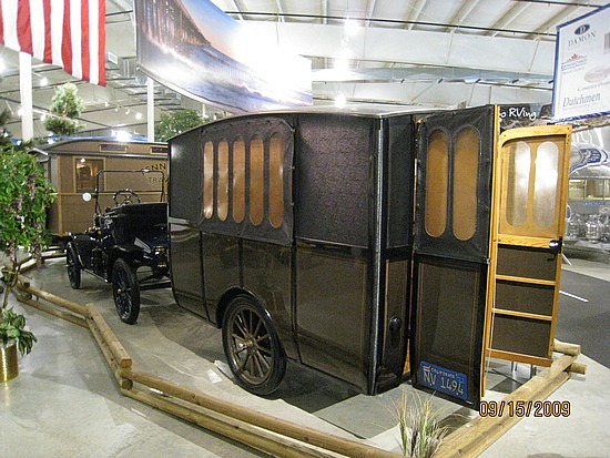 Here’s the Earl Travel Trailer from 1913 – considered to be the earliest – in fact the top photo shows a Model T pulling it. No F350! Imagine.