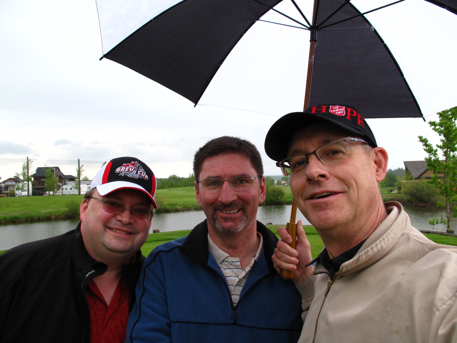 | Dave, Eddie, me under the golf umbrella |