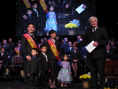 Yesterday was the Commissioning and Ordination of the Ambassadors of Holiness Session. For Wendy and I we’ve had a more personal interest in this group – for a couple of reasons. Last night we were thrilled to share in the evening as we watched Kyla become an Officer in The Salvation Army. Kyla’s path to this moment has bee one we’ve been privileged to share in. There were so many highlights to the evening that it won’t be possible to capture them all here – but a few photos will help portray something of the evening. The ordination portion is always moving – and a reminder of our own covenant…to live for God, to bind ourselves in covenant, to give ourselves in the service to others. The reminder is also a good time to consider again how God has been with us, how God has been our strength, how God has always been faithful.