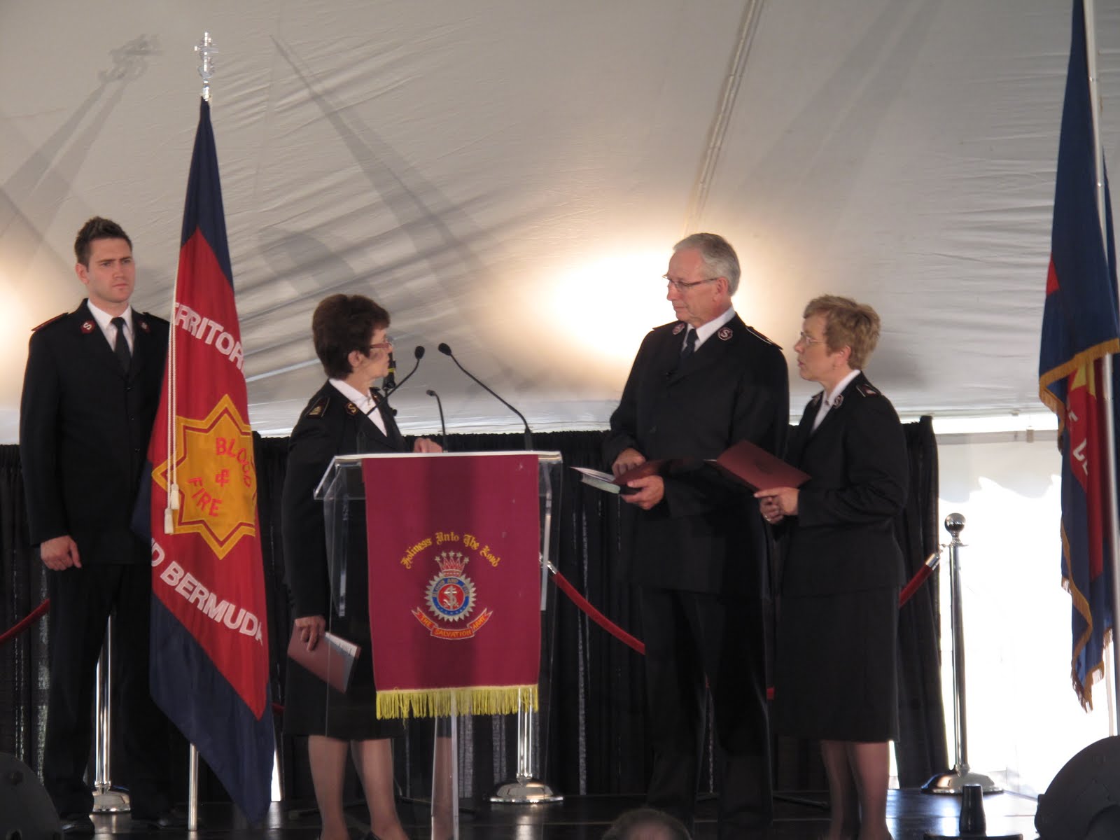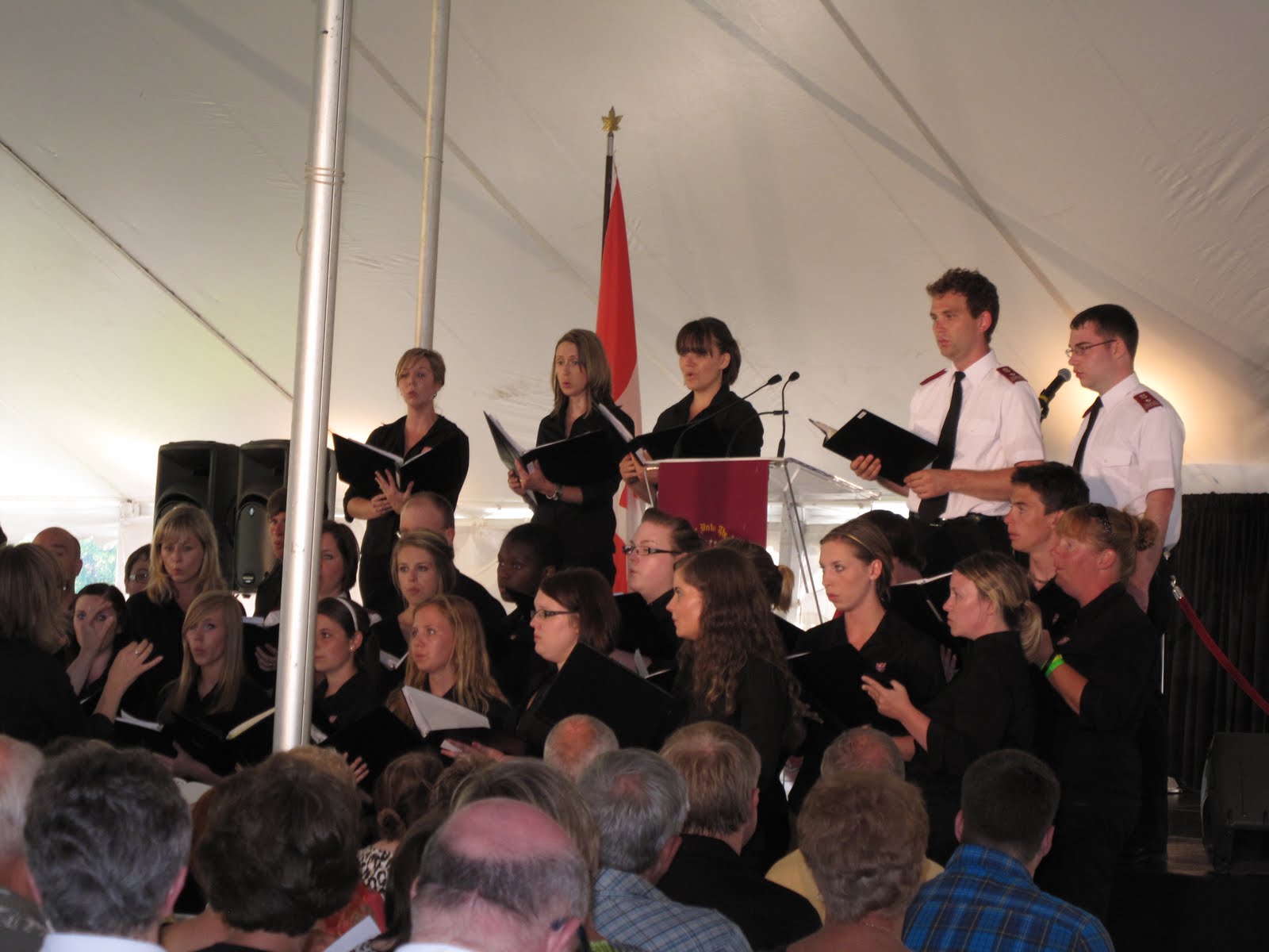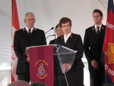 Last evening we eagerly gathered at the Jackson’s Point Conference Centre to witness the official welcome and Installation of our new Territorial Leaders, Commissioners Brian and Rosalie Peddle. Of interest to us all was that General Linda Bond, a Canadian, was here to officiate. Everyone seemed especially pleased to have the Peddles home, and to share in the event. The Canadian Staff Band and the Divisional Youth Chorus were on hand to provide excellent music.