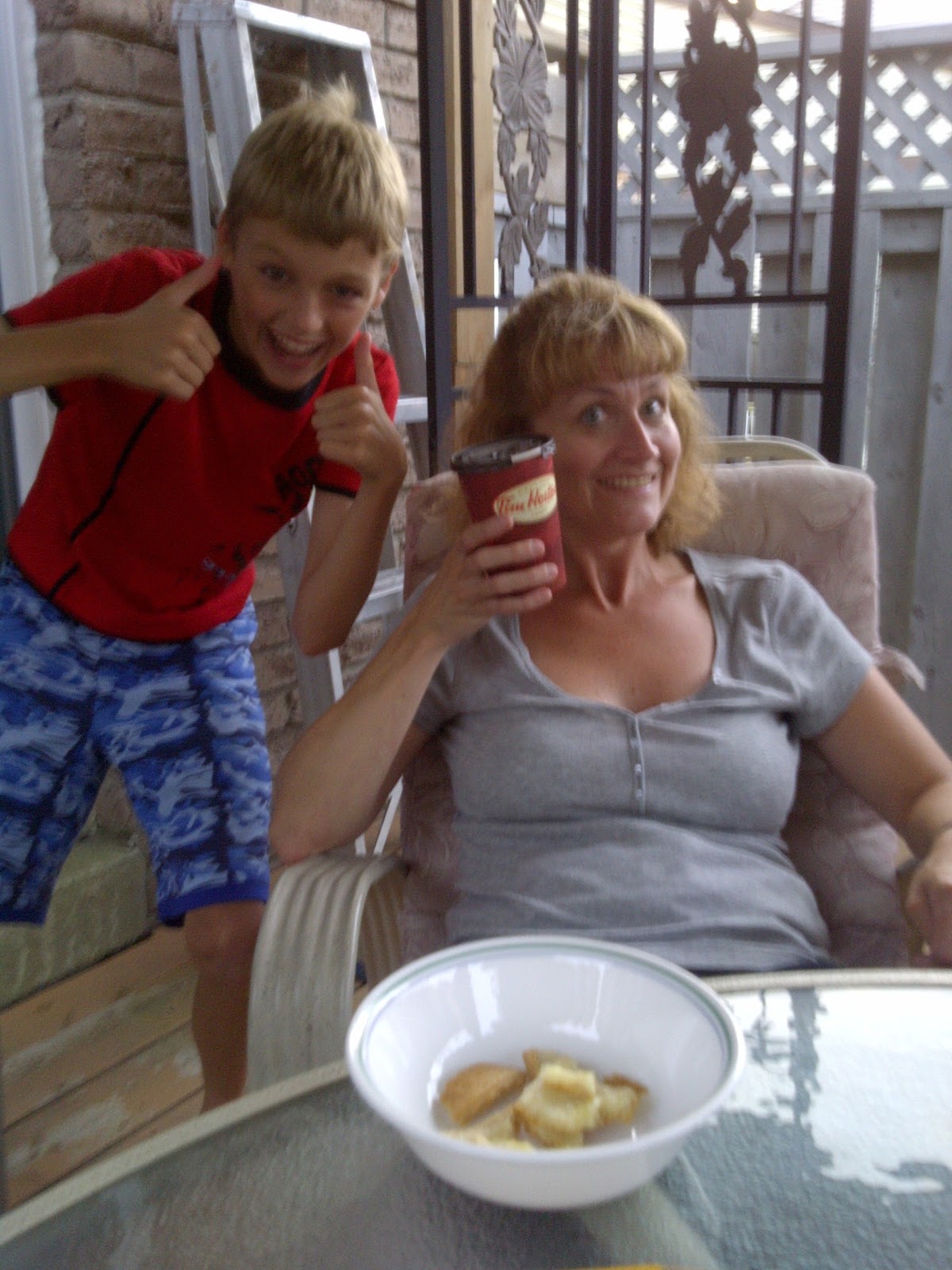 Finally – a chance to drive up to see Cath, Terry, Noah and Laura. Wendy and I managed to carve out a bit of time to arrive with two double, doubles…and a box of timbits.