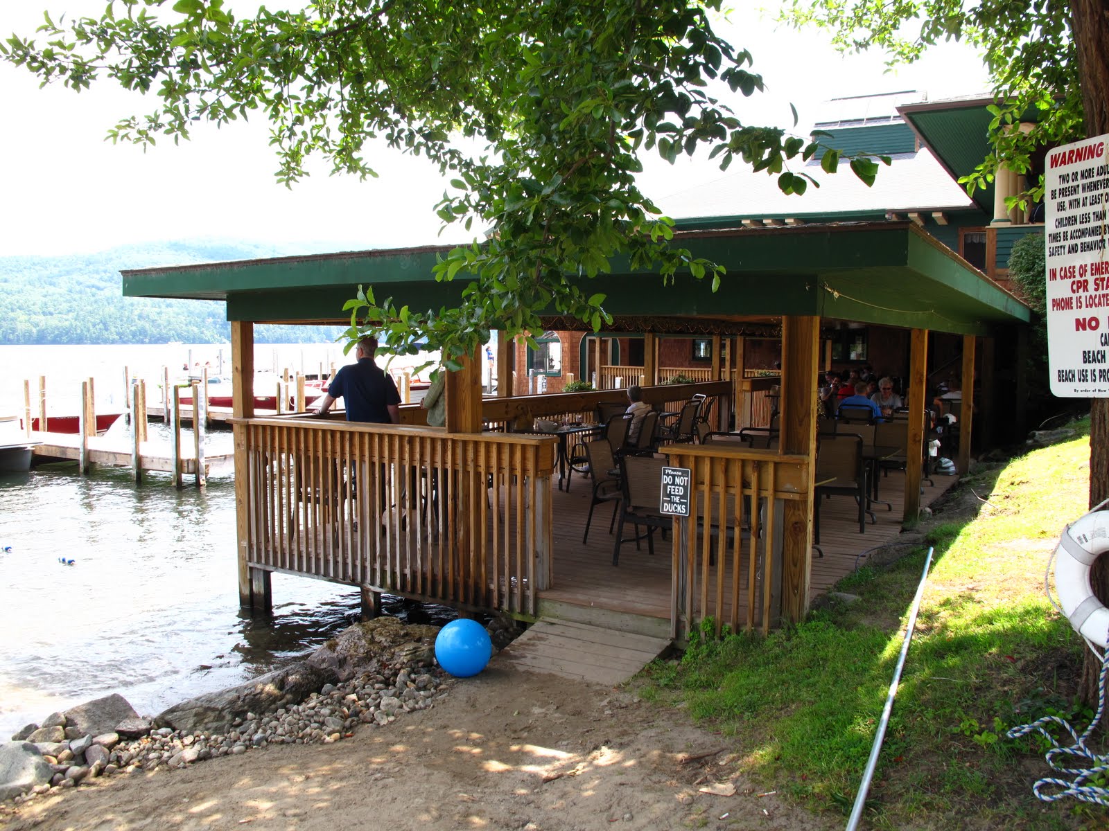 So a couple of pictures from hot and sunny Lake George. We had lunch today at a very exclusive restaurant right down by the water. At the top of the hill a young man stopped us with instructions that we couldn’t enter. We told him we were interested in eating lunch. After some discussion we were allowed to proceed…reluctantly and with hesitation he left us go.