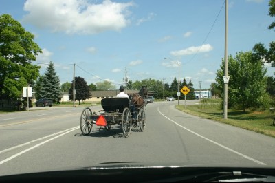 With our move this has been a very different kind of summer. Changing cities is one thing – changing provinces is another. It seems all our down time is taken up in unpacking, getting registered for one thing or another, setting up accounts and services… so this past two weeks has been a wonderful interlude in the rest of life. I might even call it an oasis. We did promise ourselves we would do some day trips, and despite the price of gas being in the neighbourhood of $1.30 per gallon, we managed to see some sights. Among the places we wanted to visit was the small town of St. Jacobs just on the northern border of Waterloo. It was another one of those hot days, but with hats in hand we set out to visit a very familiar town. This area is noted for the work and culture of the Mennonites (Old Order) and the baking, quilts and handicratfts all share this trait. Wendy was, as you might expect quite pleased to visit the quilt shops and estimated, by the value of what was on display for sale, that her quilts would sell for in excess of $1000. She of course simply gives them away, but I was thinking – micro business!