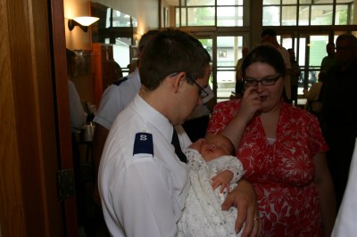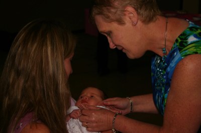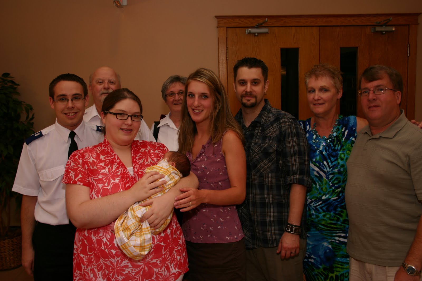 Mom did a great job of the dedication as we shared in the service at Listowel yesterday. After the service we had lunch together in the gym and shared in some good conversation and of course everyone wanted to hold Rachel.