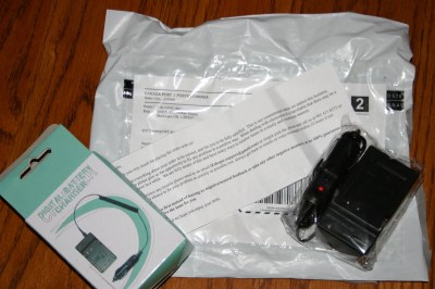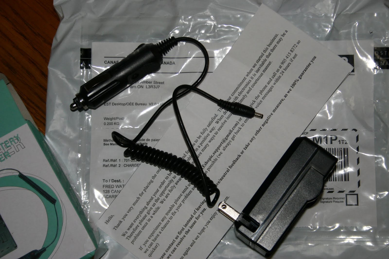 The new charger arrived for my Canon G10, which means I should find my original at any time now. It arrived in 3 days and they charged me .01 for shipping. The charger has, as you can see, both AC and DC capacity.