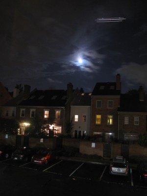 Walking back to the hotel the moon shone bright and planes were coming out of the airport – in this photo you can see the area of the hotel, the full moon and a plane travelling across the sky – see the dots on the streaks of light – that’s the pulsing lights under the wings as it passes by.