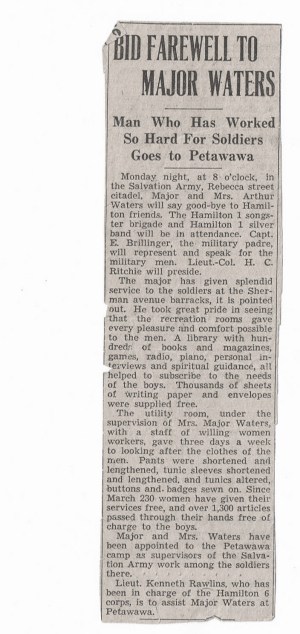 Remembering “them” of course is kind of generic. I do not have any relatives that have served directly in the Armed Forces which is strange seeing that up to my Grandpa Waters all the male Waters were officers in the Royal Marines. But Grandpa Waters never became a Royal Marine – he met and joined The Salvation Army instead. I think his heart was certainly with those who served as evidenced by the clipping from the Hamilton Spectator. Grandpa Waters was too old to enlist so he ended up serving in the Red Shield Services in Petawawa. The Base at Petawawa is still very active and a significant location for troops and training.