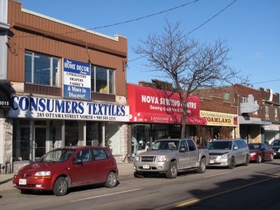 Hamilton is also known for Ottawa Street, home to many textile stores. We’ve been talking about going there for a while…and Wendy’s dissatisfaction with Toronto’s textile scene has added fuel to the fire! So Saturday morning we headed out fairly early. The day was warm and sunny which only added to the pure enjoyment of strolling this area.