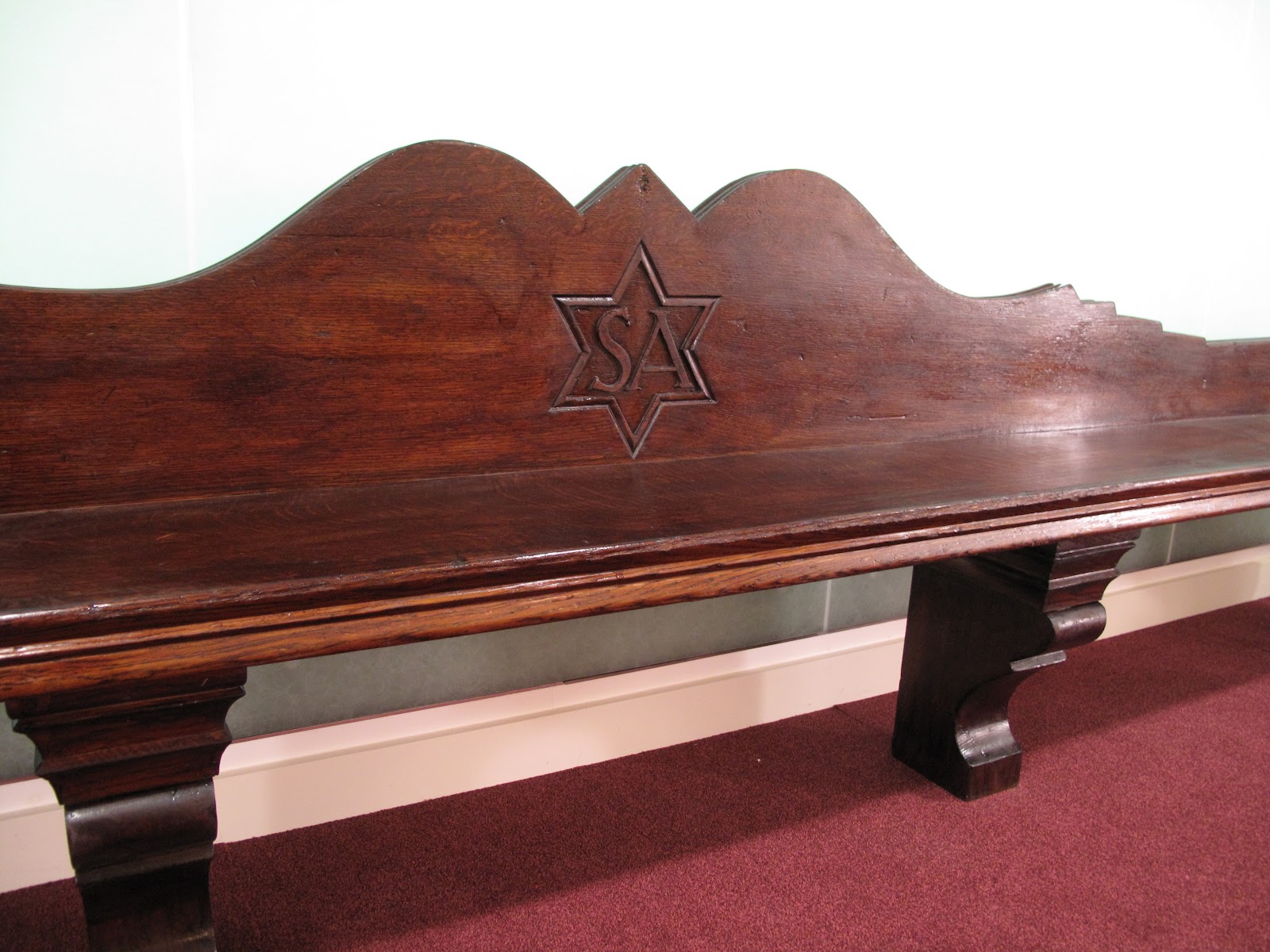 At the College for Officer Training in the UK, I discovered that the old Mercy Seat is now located in a very small chapel. So I got a couple of good pictures though due to the size of the room I needed to take the photos on an angle to get a good shot.