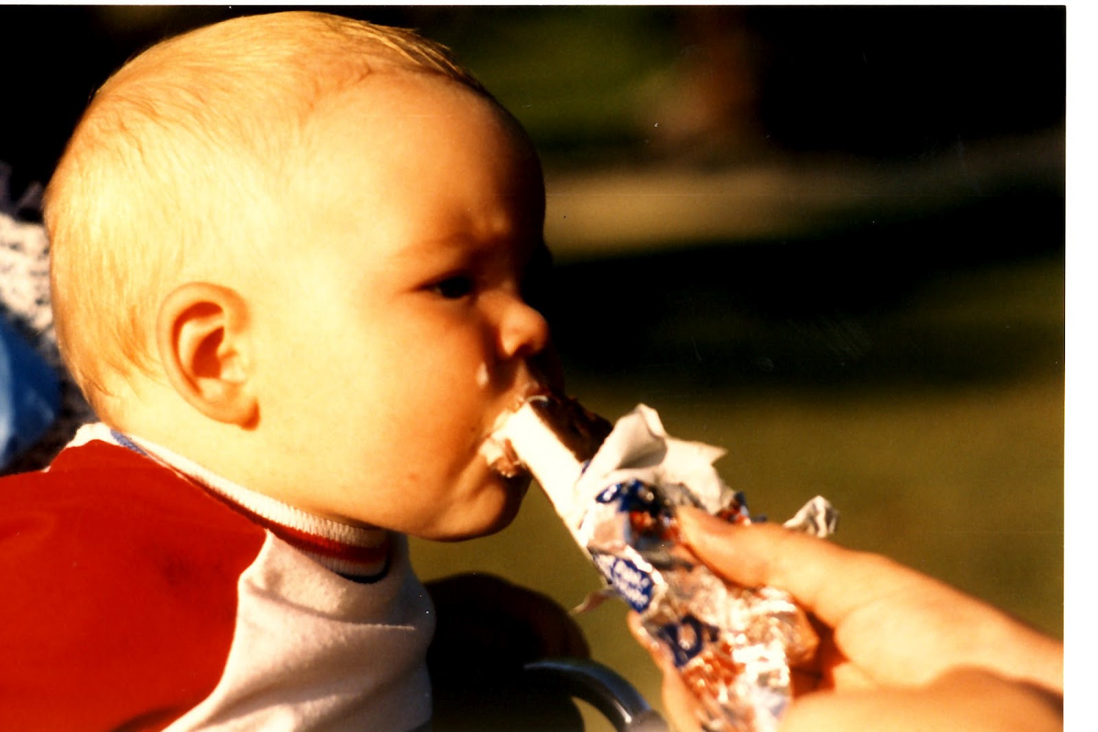 When it comes to ice cream who can resist? This is a picture of Jason – probably the summer of 1985 on a hot hot day. And those are Wendy’s fingers as she shares an ice cream sandwish with her little boy.