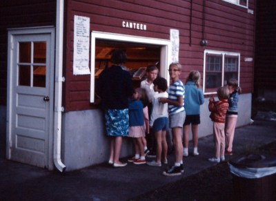 Well at camp we had a canteen – a small store that would sell mostly sweets but often you could by a camp t-shirt or perhaps a hat – some remembrance of that year at camp. Remember the camp pennant? The schedule always had canteen time when the kids could come and get a couple of things…and as it was often free to them…well it was very popular!