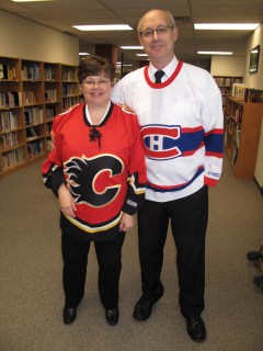 A very Canadian devotions at THQ today as this is the Canada Day long weekend approaching…and what more Canadian to wear to devotions on such a day as our hockey jerseys. Sorry to my Calgary friends….I went with Montreal for today and Wendy remained faithful to the west.