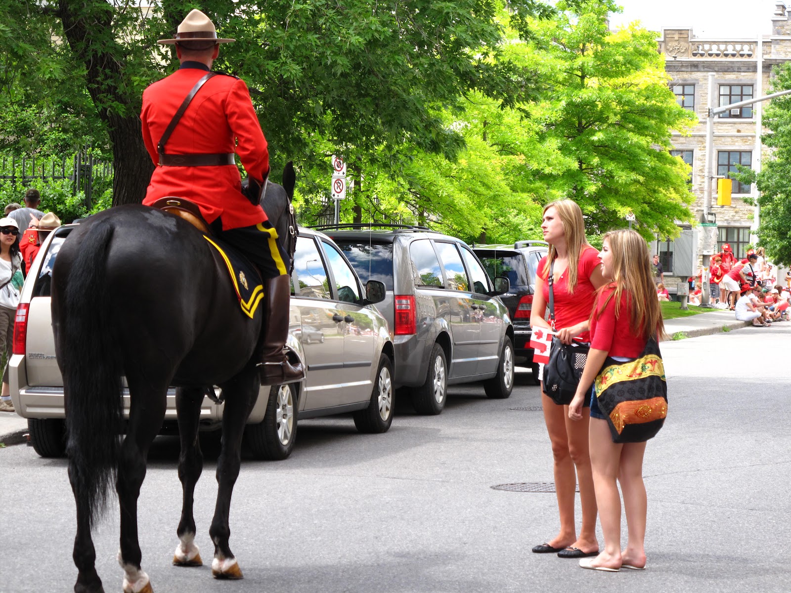 The black horses are magnificent with a maple leaf shaved into their rear haunch. I always thought it would be great to be one of the MOUNTED…mounted police!