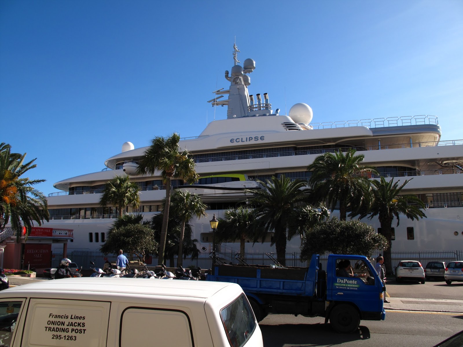 While we are in Bermuda the world’s largest yacht is in the harbour – the Eclipse. Yesterday we had a bit of time to go along the water front and get some photos – though unlike the tall ship this one is securely docked and wasn’t going anywhere. The owner of this ship is from Russia – a billionaire who apparently likes BIG toys.