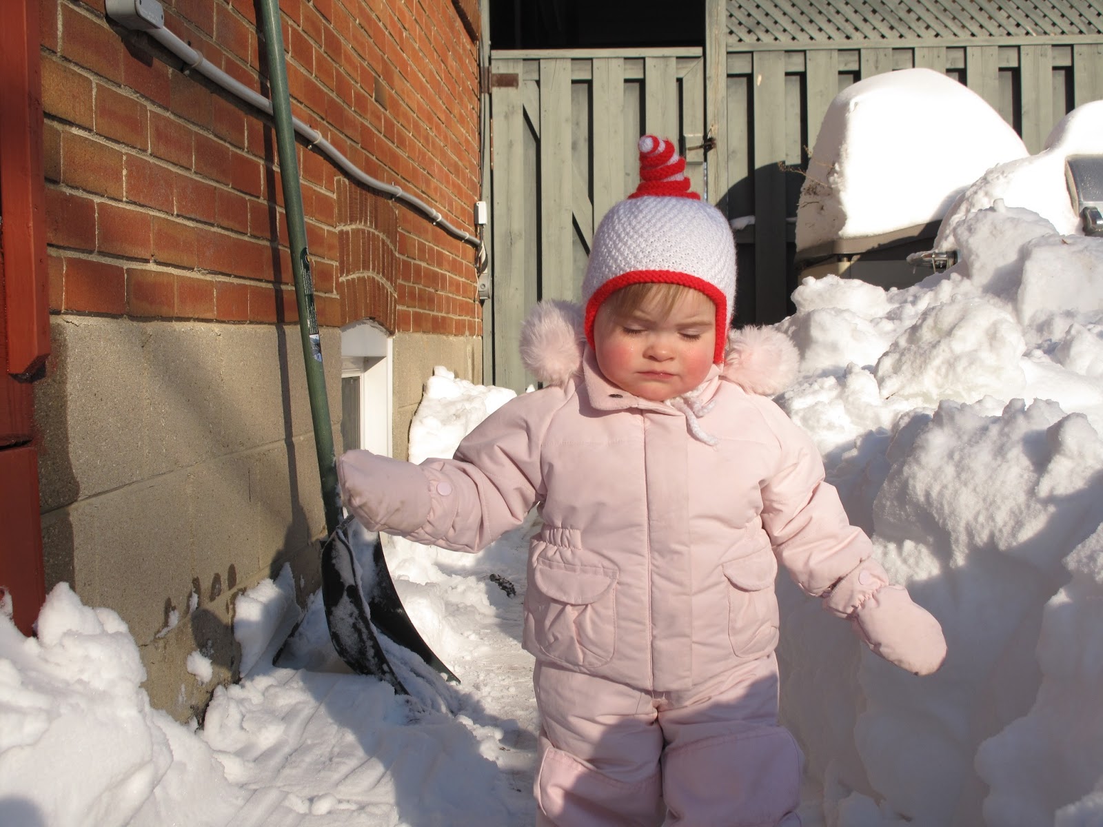 Wow that was quite a snow fall…and when you’re little the snow seems all the more deep! I did a bit of digging to keep the snow from some basement windows and from the patio doors. And guess who came to help?
