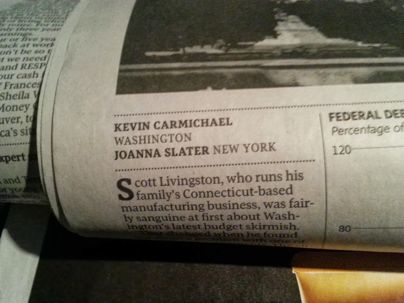 Sunday night on my way back from Vancouver I was reading the Globe and Mail’s article by Kevin Carmichael (Washington) and Joanna Slater (New York). The article “Shutdown to Slowdown” was excellent. I very much enjoyed the article – though perhaps enjoyed is the wrong word. I found it informative and honest. As they review what is currently happening in their economy and the related politics this was the line that I thought was most noteworthy, “A business community that prides itself on an ability to thrive without the help of government is confronting the great irony that politicians that do nothing can cause the greatest harm of all.”