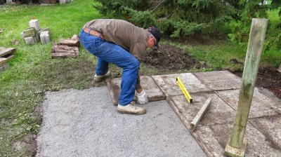 We laid lime screenings down for the stones to go on and worked to get it level and…well, almost square! Come spring we’ll get a shed on it. Here’s just a couple of photos from the day.