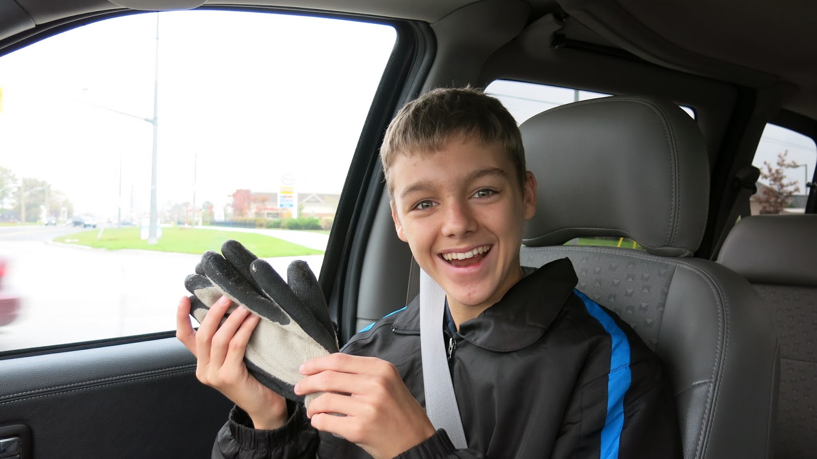 | All smiles with his work gloves |