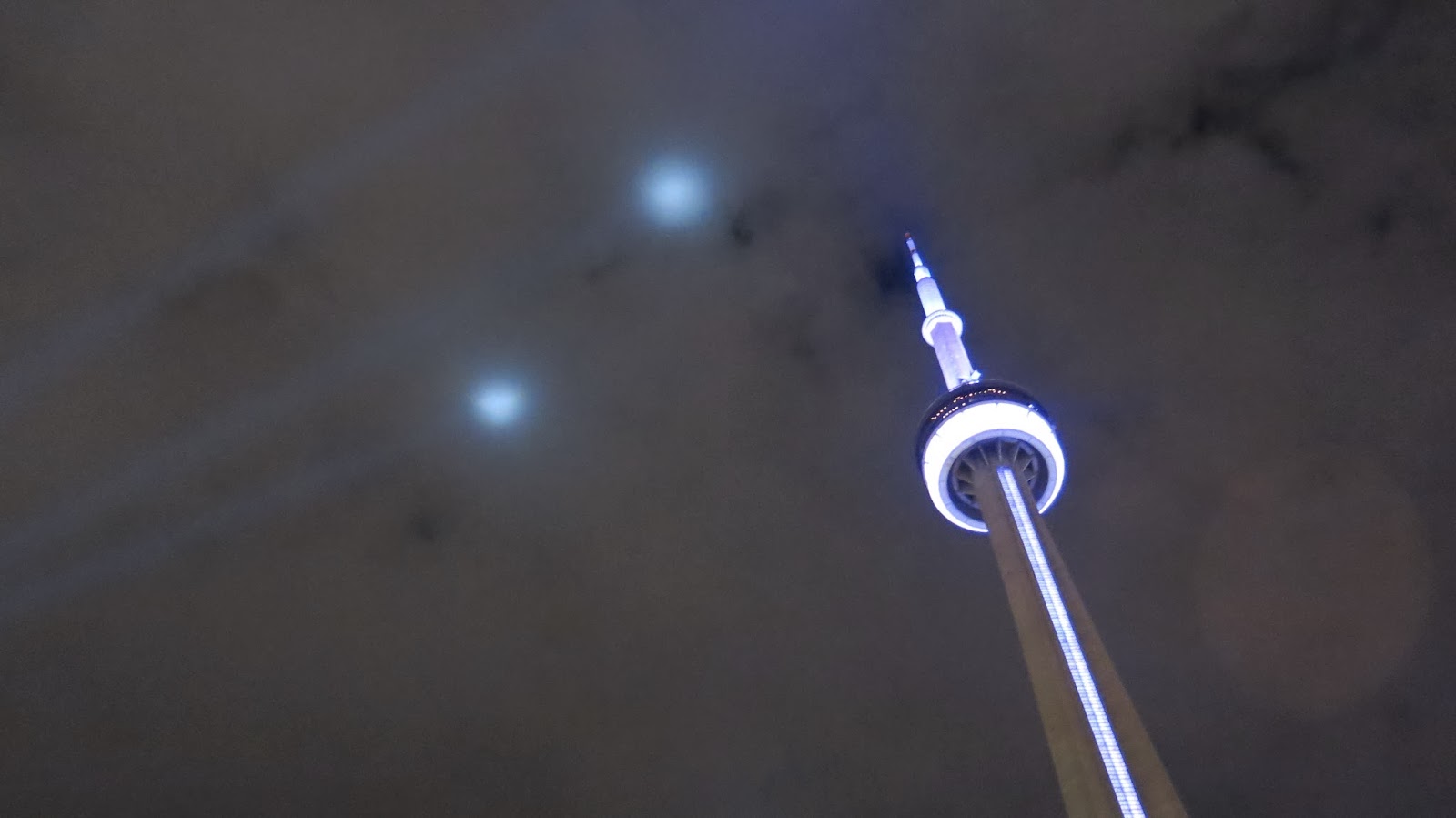 | The CN tower and search lights in the sky |