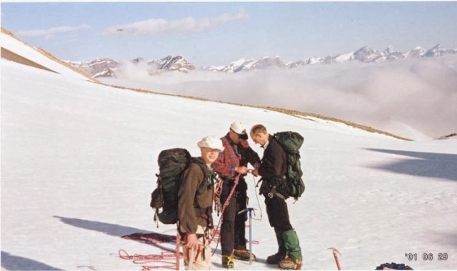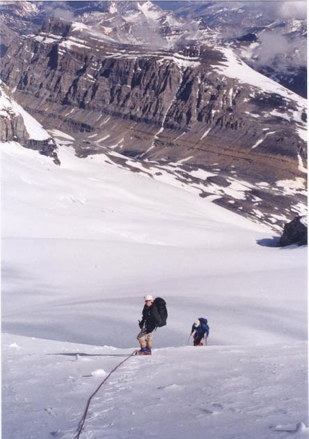 This was the first time I saw someone fall through a snow bridge. Mike disappeared up to his shoulders 5 minutes after we stepped on to the glacier. No pictures of that event but it did remind me that mountains are quite unforgiving.