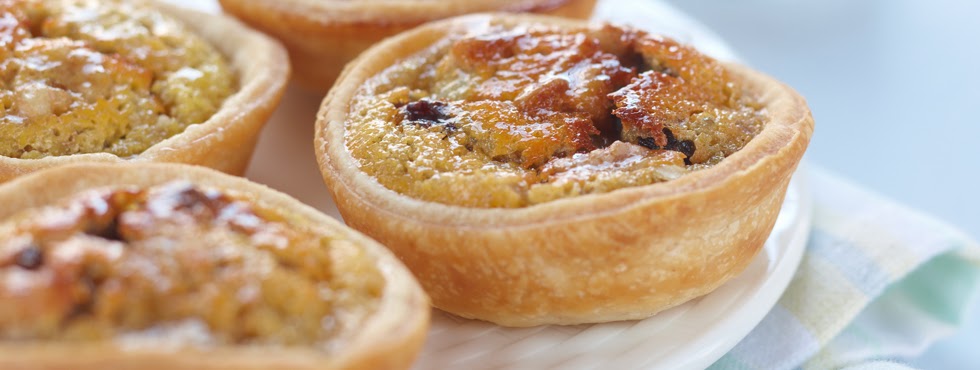 Shells:Prepare pastry. Roll out thinly on a lightly floured surface. Cut into rounds with 4 inch (10 cm) cutter. Fit into medium-sized muffin cups.