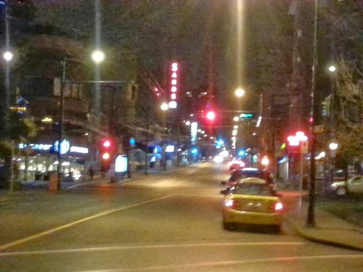 | a poor photo looking up Davie Street |