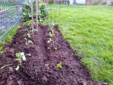 This year we’ve planted brussel sprouts, tomatoes (of course) and cherry tomatoes (Wendy’s favourite), red peppers and butternut squash. Here’s one garden – we have two locations this year!