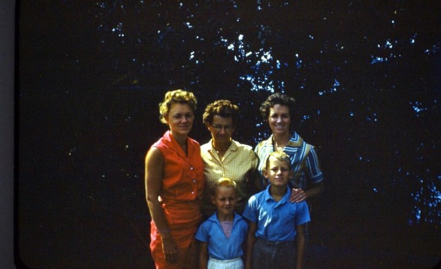I tried to see if I could find a picture of the homestead – not yet – but here’s my Nanny Eastland . She’s in the middle of the photo in yellow and my uncle Jim is standing beside me with my Mom’s hand on his shoulder.