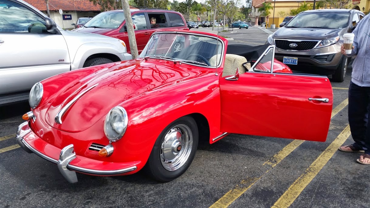 I bumped into Guy Newmark in the parking lot outside Starbucks. He was driving his red Porsche that day but below is his story with his blue “million mile” Porsche. He was kind, interesting and friendly. I asked if I might get a picture of his car…”of course and look up my million mile Porsche”.