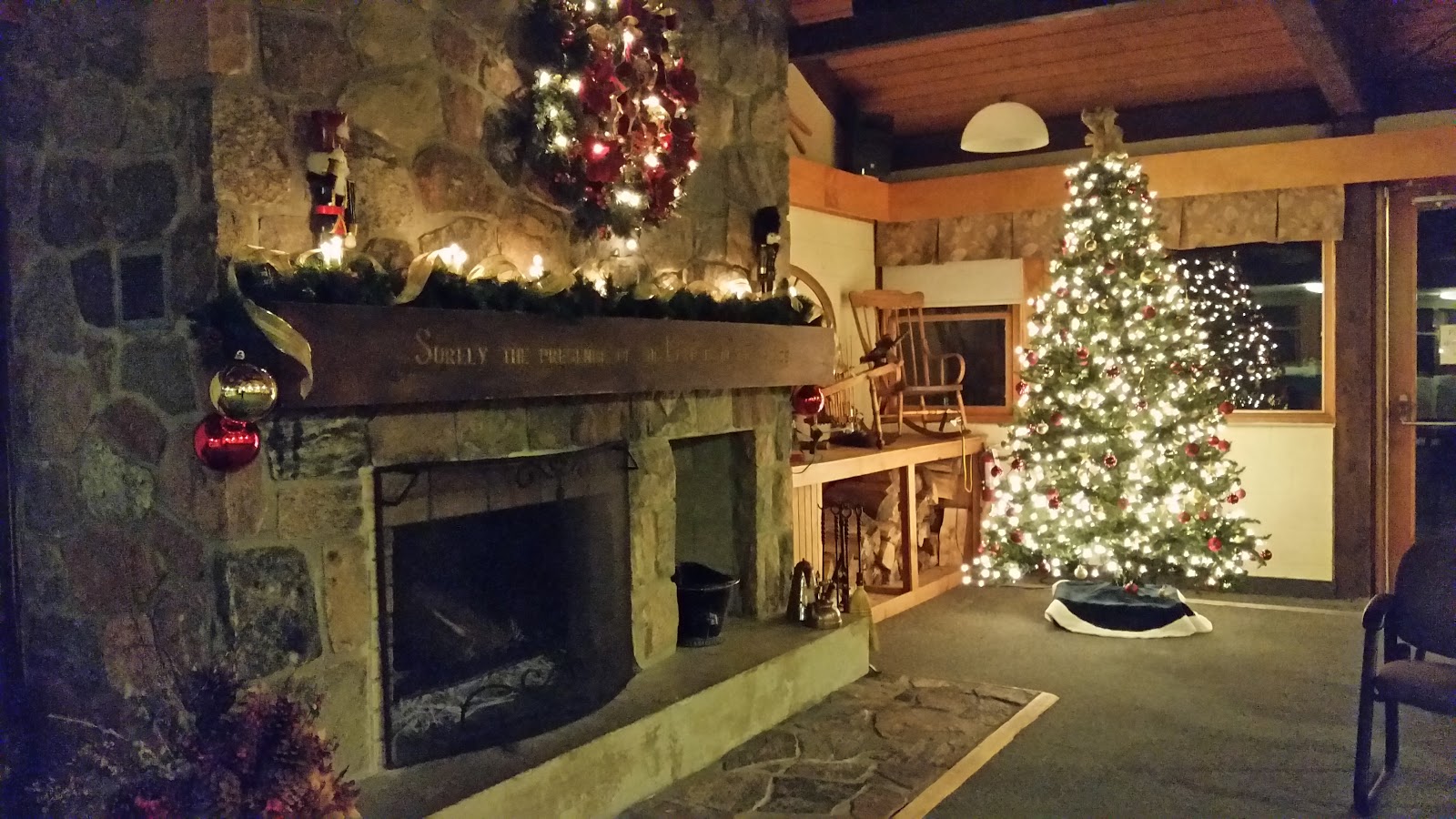 In the evening I noticed that the lounge at Jackson’s Point had such a beautiful setting as it is ready for Christmas. So I grabbed my phone to get a good picture. What a post card type of shot.