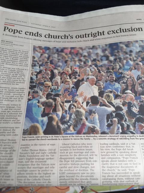 Sunday’s Globe and Mail had this interesting article on the Pope and his latest release in telling the priests and bishops to have a ministry of reconciliation and forgiveness.