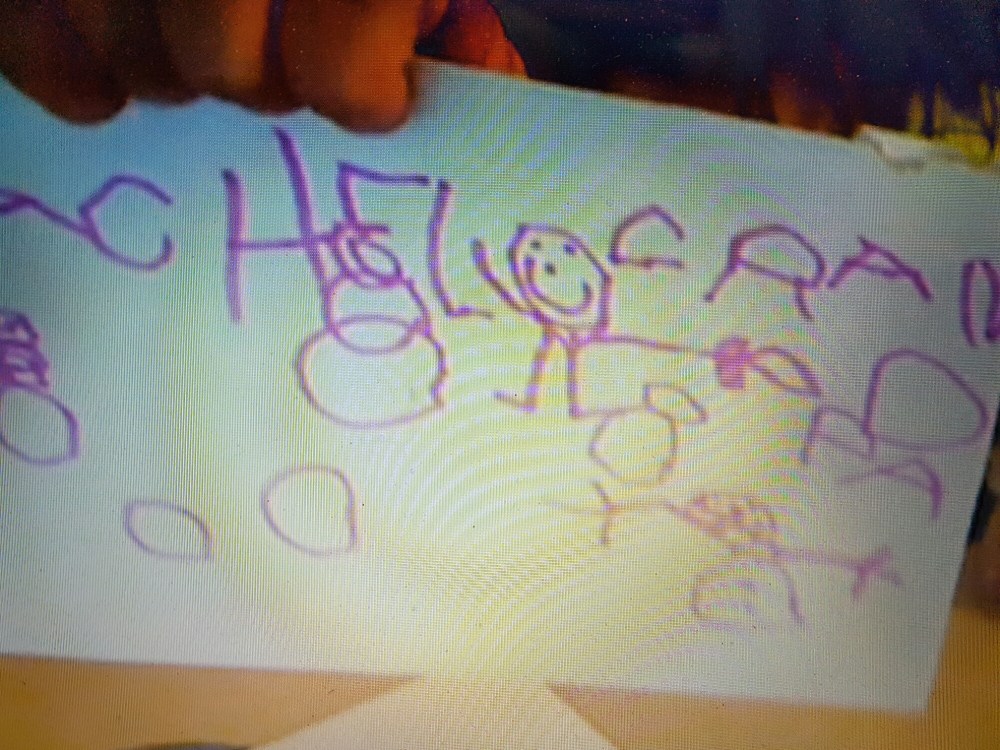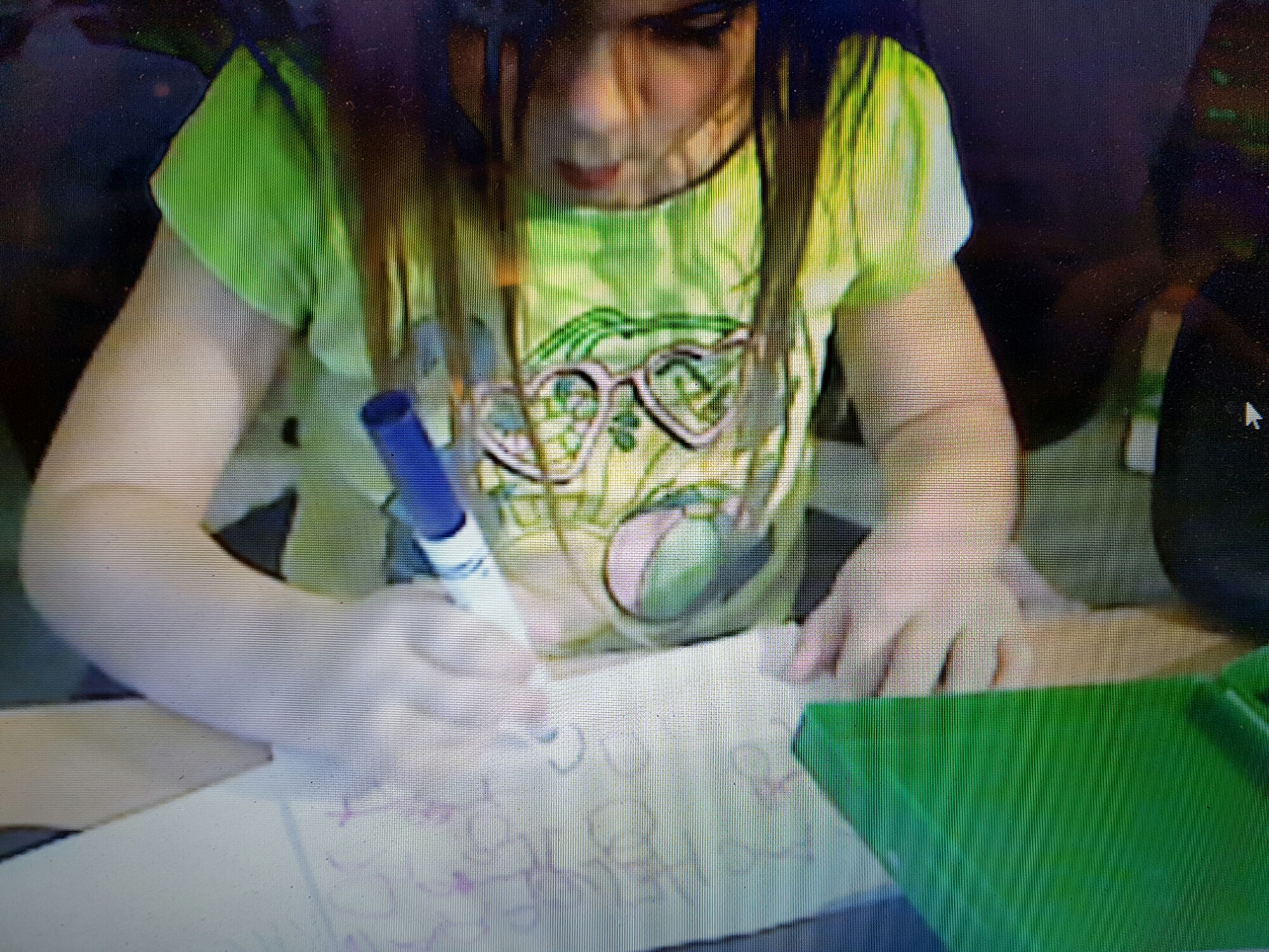Rachel is now in school and learning so many different things. Last night’s video chat featured time to sit and show Grandma and Grandpa what she could do. Her joy in being able to write her own name was evident. Then she drew a picture of her and Grandpa and wrote “Grandpa” on it! She was so proud.