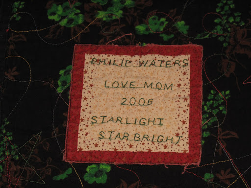 This quilt was one Wendy made several years ago for Philip. It’s called Star Light Star Bright. We were visiting Phil and he and Amanda had given it to us to have on our bed. I thought it would give us a chance to get a few photos and post them here.