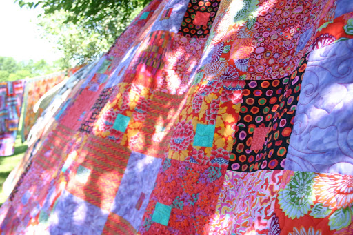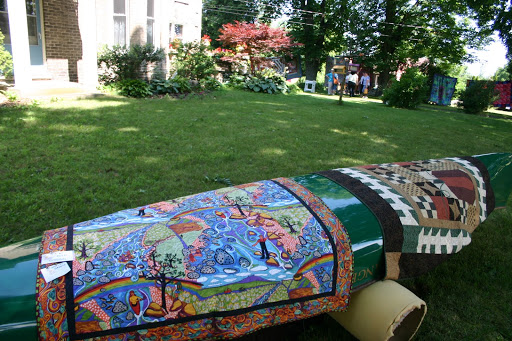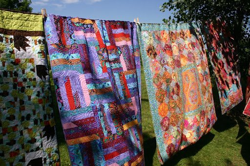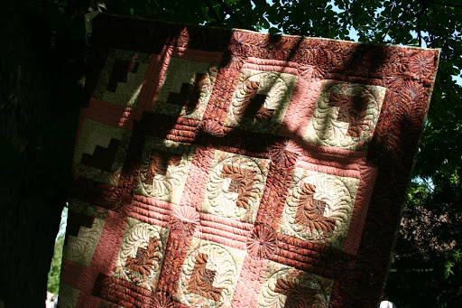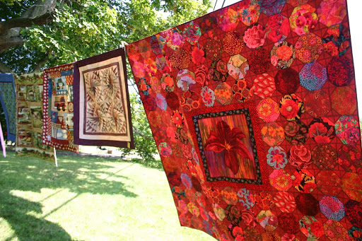 I had received an email notifying me of their annual outdoor show and seeing that we were on holidays, I dragged….errr…brought Fred along with me to be my quilt photographer.