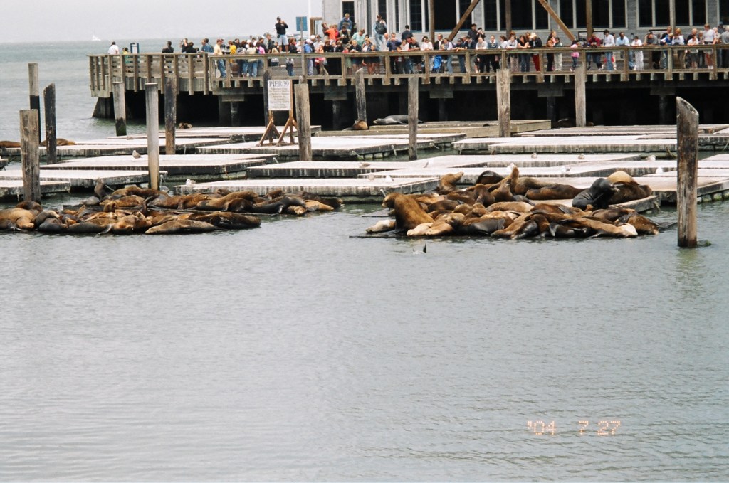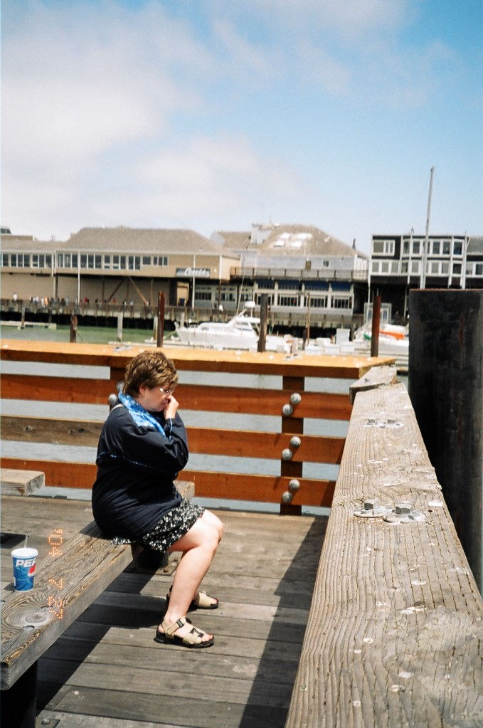 Here is a photo which has special memory to me – it’s Wendy calling her Mom on her cell phone. The smell of the nearby seals and the noise was amazing.