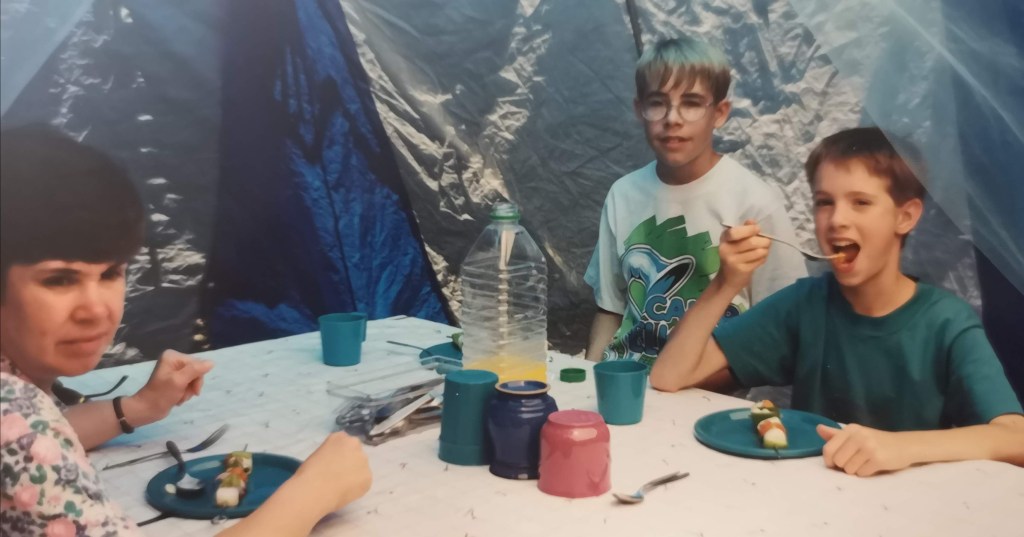 After leaving Hamilton and summer camps behind, Philip asked the question, “what are we going to do all summer?” We decided to buy a tent trailer. We had little extra cash but we had enjoyed camping using others trailers or RV’s so we went went out to look. Then we began to discover this thing called “towing capacity”. That’s when we realized that the vehicle we had was only going to tow the smallest, lightest, tent trailer we could find. So this little gem had no hot water heater, no fridge, no bathroom, no extras, but it was ours and we had seven great summers with it!