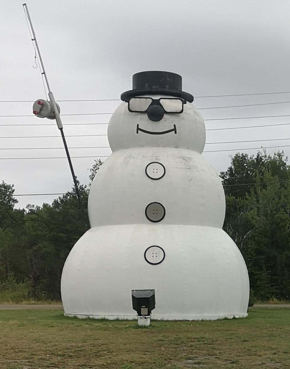 Most of these little towns have something by the road – some are magnificent statues of moose or pioneers or occasionally a small float plane or recognition of a historic moment. In one small town however they had a snow man! A snow man with a fishing rod!