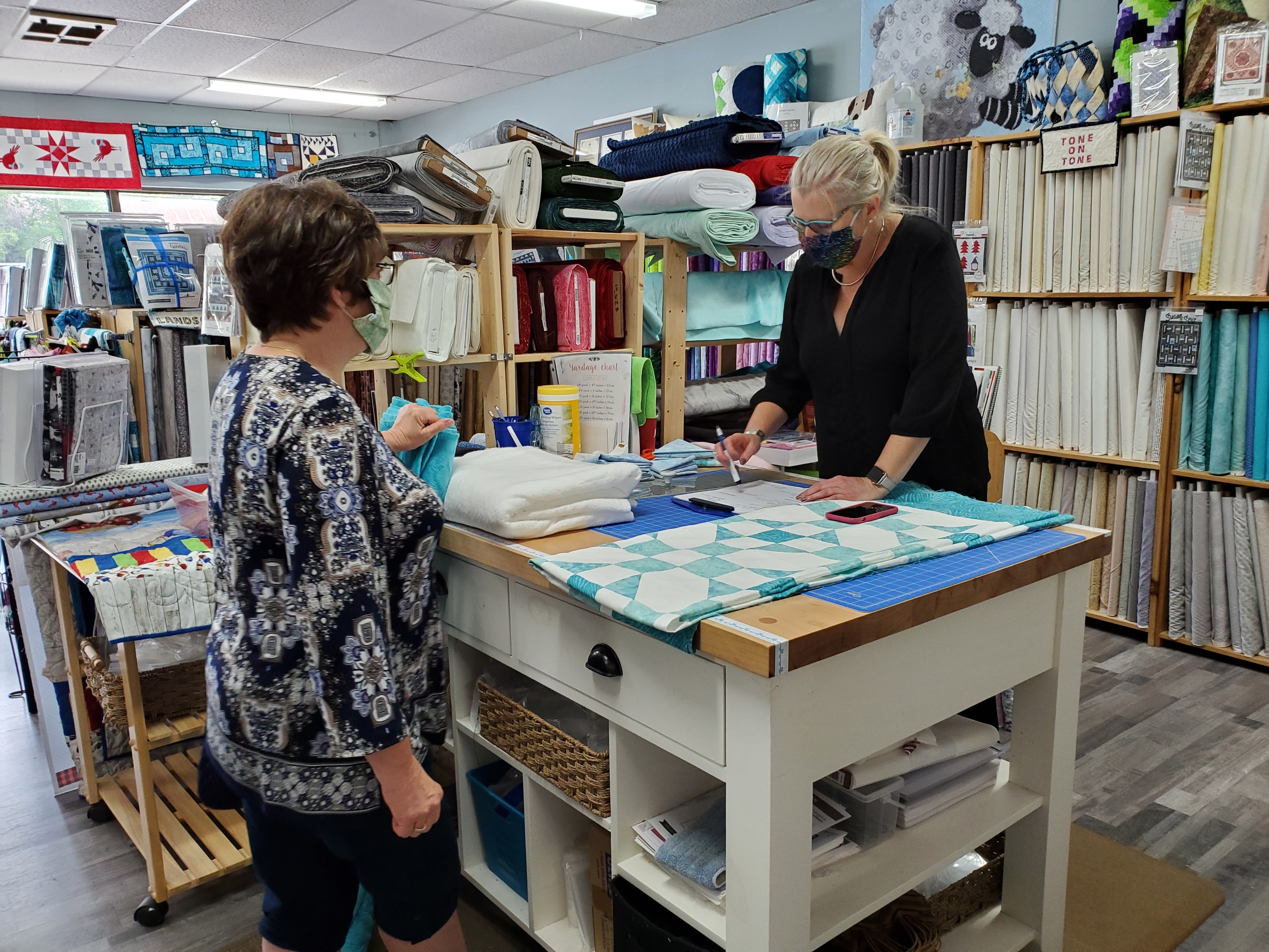So we were off to see Edith! She owns The Quilting Gnome up at Jackson’s Point. Edith remembers the names of her customers, is a happy gal with good relational skills and she has a lovely quilt shop.