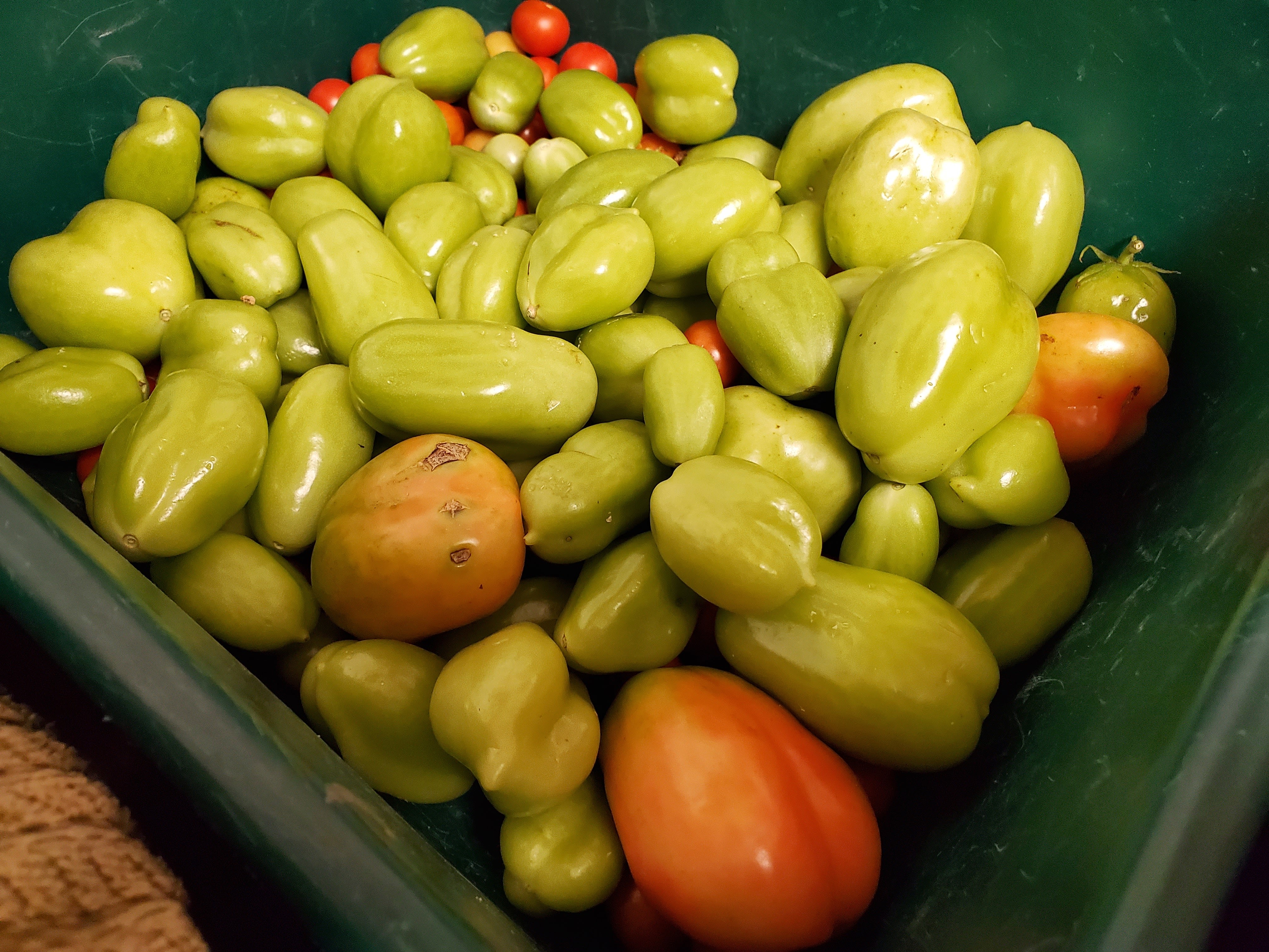 I’ve never, and I mean never, done anything like this. I went and dug out the tomato plants and harvested the last of the tomatoes. A number of them are green so I decided to do some research on what to do with them. I found an article about green salsa. It was actually talking about a recipe that was in the New York Times but everybody who tried it was disappointed. But one lady took it upon herself to change it up and reported success – even suggested that you can replace the cilantro with garlic. I am going to do that not being a cilantro lover.