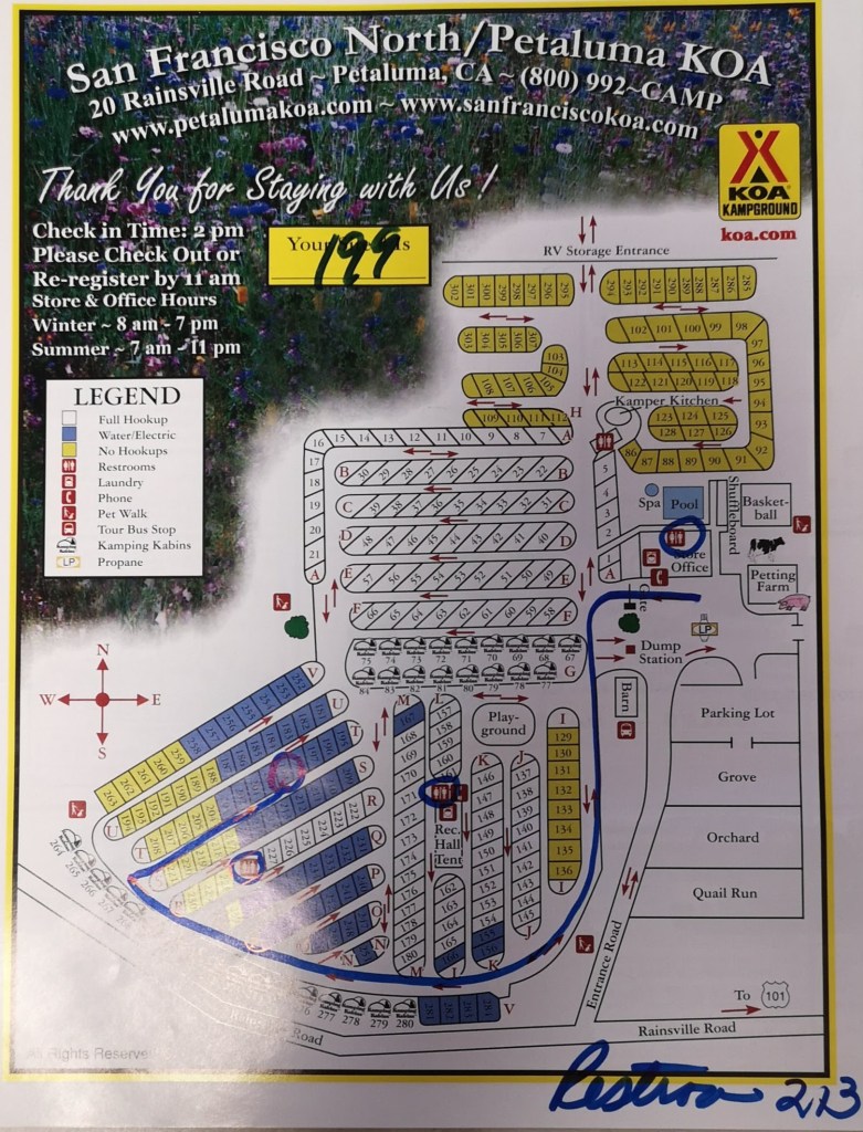 When we were cleaning out the trailer last summer before handing it over to Philip, I pulled out a number of sheets from trailer parks that we have visited over the years. I thought I might share some of them here.