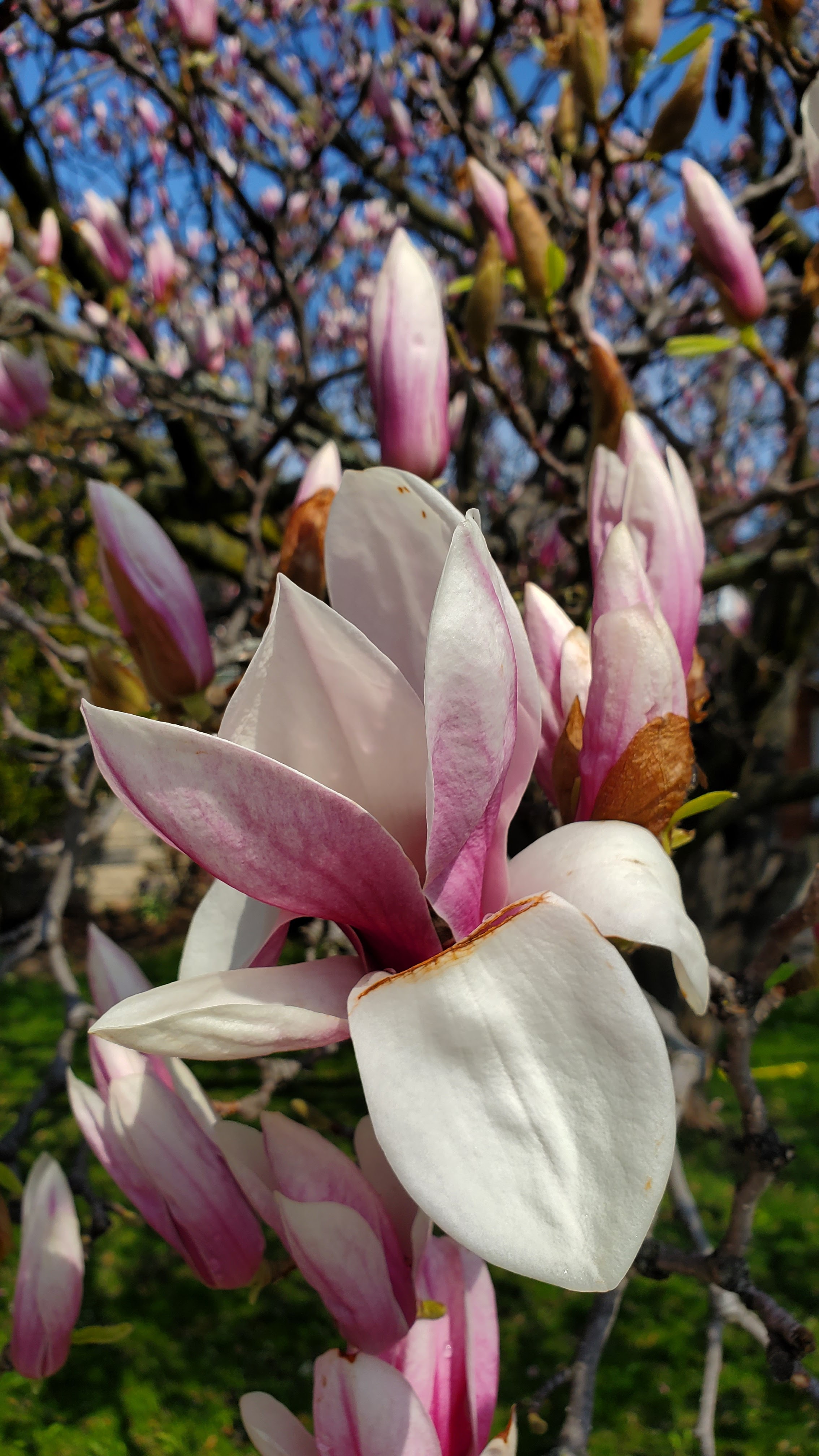 Another work week is over and with it we look towards a new month and see the time counting down to our departure to Edmonton. We’ve been trying to get out for a walk around the block more often as the weather improves. There are a few flowering trees that we’ve been watching develop. We have a number of magnolia trees in the neighbourhood. We also have a few lovely cherry trees.