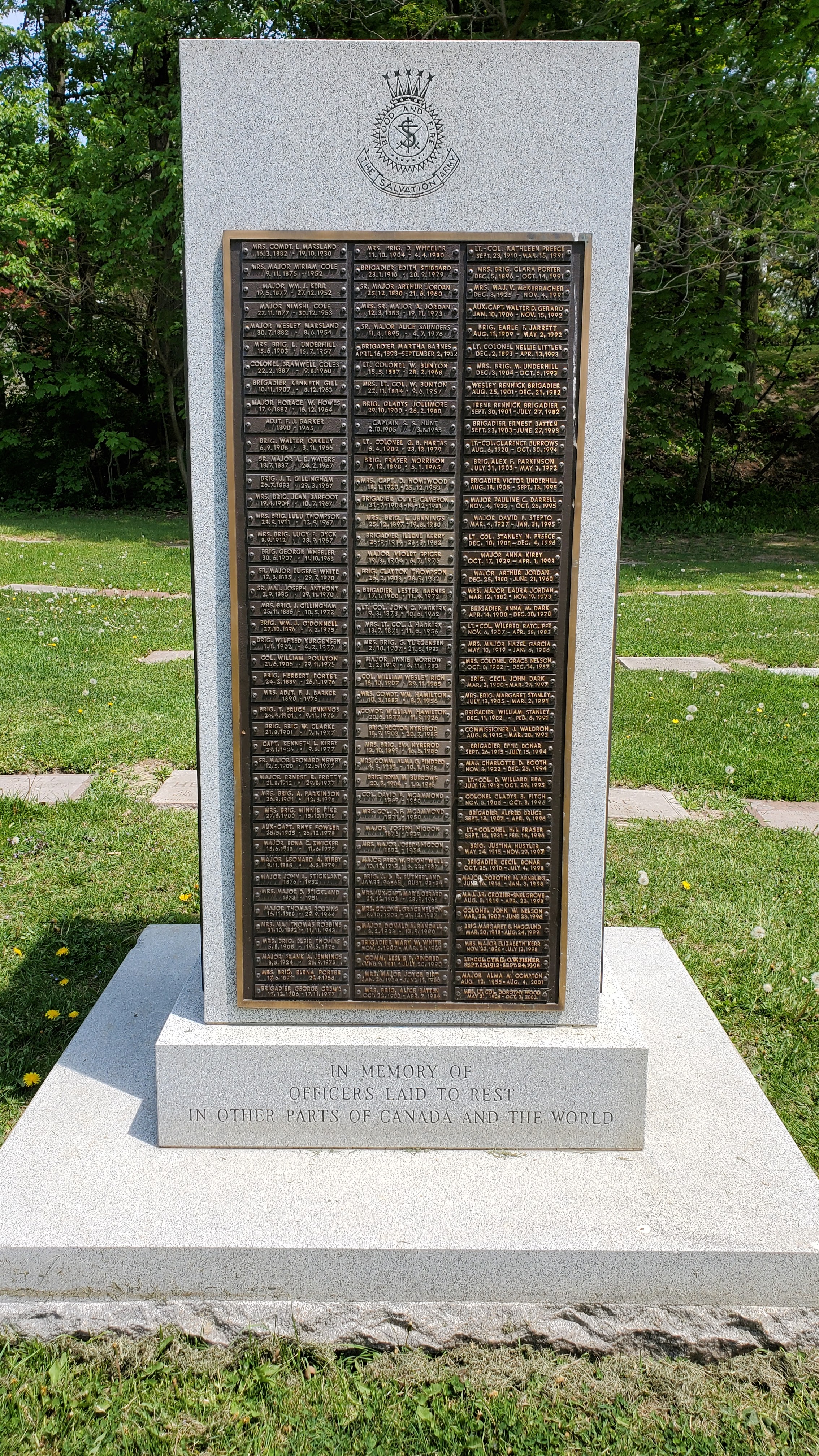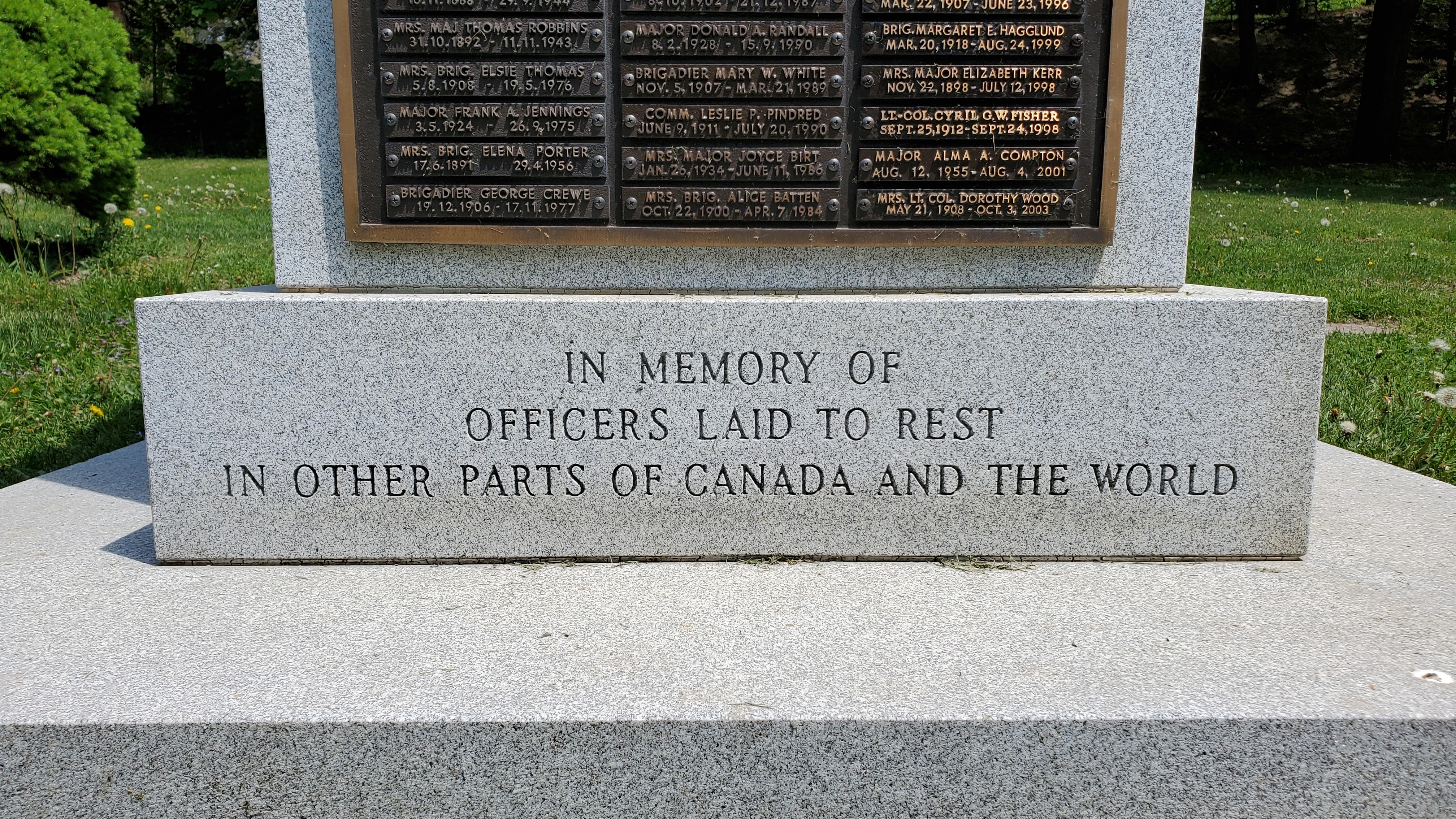 But before I went to visit Mom I thought I should drop by where Dad rests. This is a most interesting part of Mount Pleasant Cemetery and marks the place where many officers are laid to rest following their promotion to glory. In the center of the section is a tall marker which has on it plaques with the names of officers that are buried in other parts of Canada and the world.