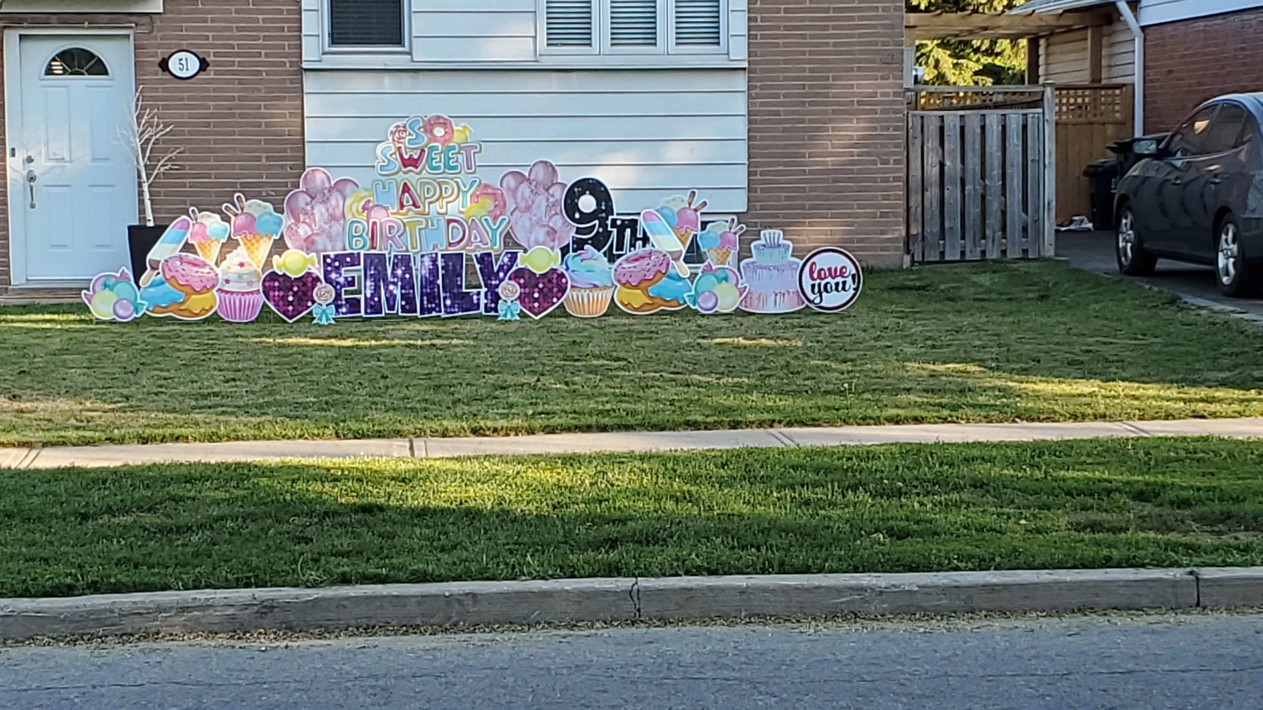 Last night we saw that one of the houses we often pass by, and one that is always extraordinarily decorated for Christmas, had a fountain going. And just across the street was a sign celebrating the birthday of a little girl.